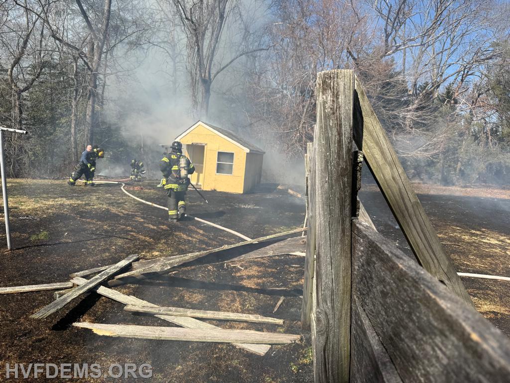 On March 9th at approximately 12:05 pm, Squad 2 and Tanker 2 were alerted to the 38000 block of Mount Wolf Road in St Mary's County for a brush fire. Chief 2, Chief 2B, Squad 2 and Tanker 2 made the response. Chief 2 arrived on scene first to find a brush fire that had extended to a 12' x 20' shed. Moments later, Squad 2 arrived and pulled a cross lay line to begin extinguishing the shed. Within minutes, St. Mary's (SM) Brush 2 and SM Tanker 2 arrived on scene. SM Brush 2 went to work assisting with extinguishment while SM Tanker 2 supplied water. SM Engine Tanker 2 arrived and pulled an additional hand line to assist with extinguishment. The fire was quickly brought under control within ten minutes. Units conducted salvage and overhaul of the shed, while continuing to address "hot spots" from the brush fire. Units operated on the scene for approximately an hour before returning to service. Chief 2 held the command.