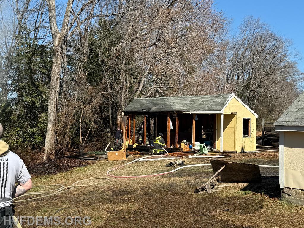 At approximately 2:10 pm, Tanker 2, Engine Tanker 2 and Engine 22 responded to the 23000 block of Christ Church Road in Prince George's County for the reported shed fire. Engine Tanker 836 and Brush 836 arrived on scene to find an approximately 20' x 30' shed and surrounding brush involved with fire. Tanker 2 arrived on scene and supplied Engine Tanker 836 with water. The crews from Engine 22, Engine Tanker 2 and Tanker 2 assisted with extinguishment of the fire and overhaul of the shed. Units operated on the scene for just over an hour before being placed in service. Battalion Chief 887 held the command.